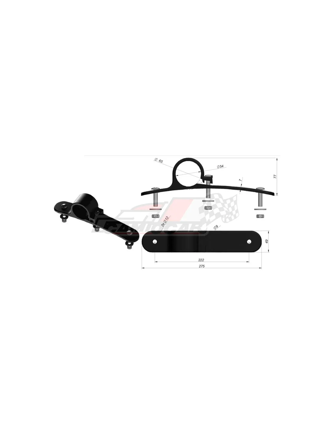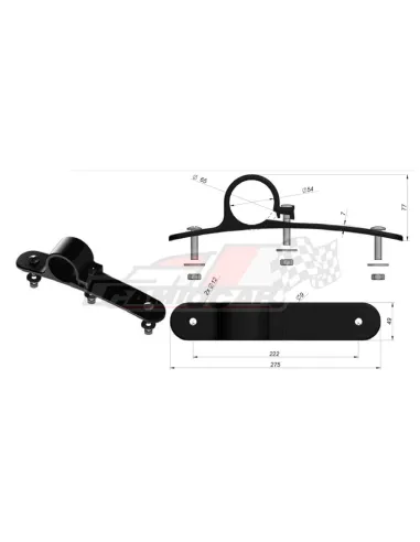 Con un diámetro de agujero de 54 mm, una longitud de 275 mm y un ancho de 49 mm, esta brida está pensada para adaptarse perfectamente a diferentes modelos de camiones. La distancia entre tornillos, de 222 mm, asegura una fijación firme y estable.